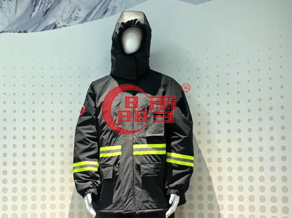 碳纖維冷庫(kù)防寒服采用NX-800型碳纖棉作為填充物,以達(dá)到極寒冷庫(kù)環(huán)境下,人體維持舒適體感所需要的保溫效率。服裝面料經(jīng)由三防整理劑處理,可有效防止雨水、油污等物質(zhì)。清潔只需簡(jiǎn)易沖洗擦拭即可。服裝帽檐、門襟、膝部及腳腕部分經(jīng)由特殊設(shè)計(jì),充分提供熱量易損失部位的防寒保護(hù)。